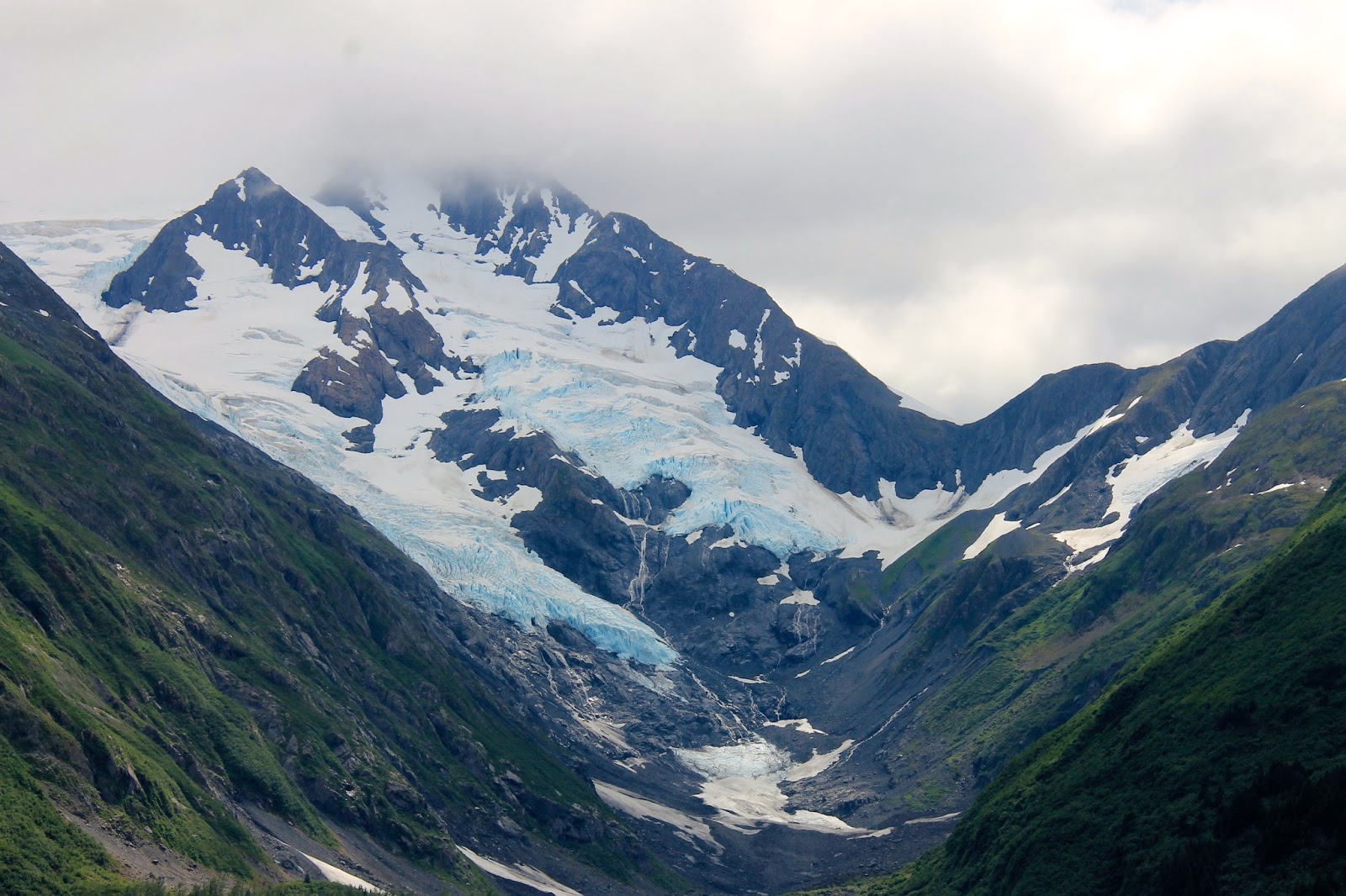 Another glacier flowing over the side of this mountain. The ice has a beautiful blue color. It is shame to think that we may one day not have them any longer.